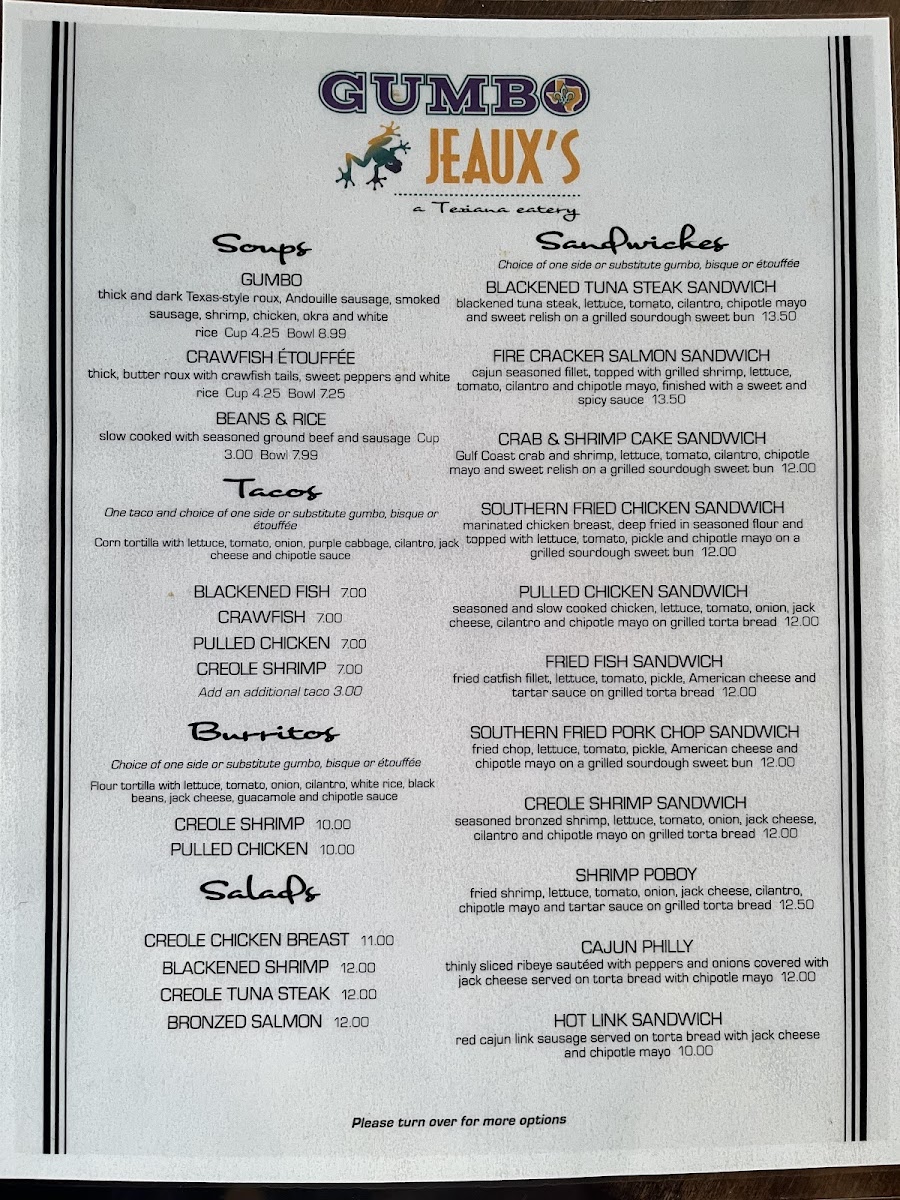 Gumbo Jeaux's Menu (2025 Update)